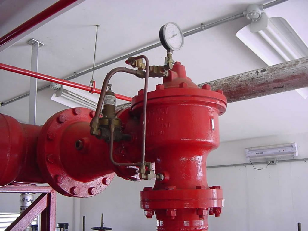 Válvula de alarma para sistema húmedo, con cámara de retardo e interruptor de presión.